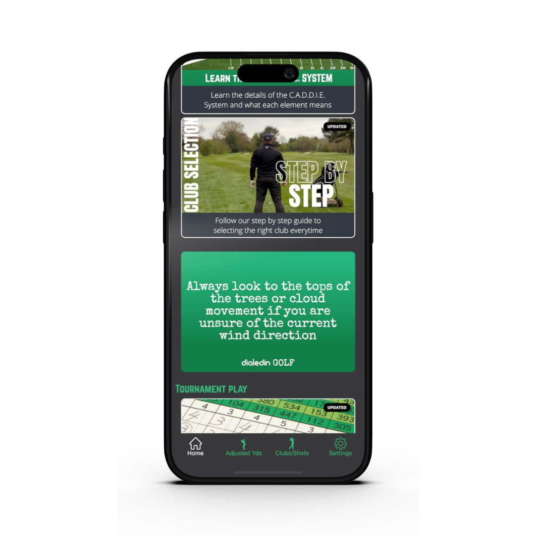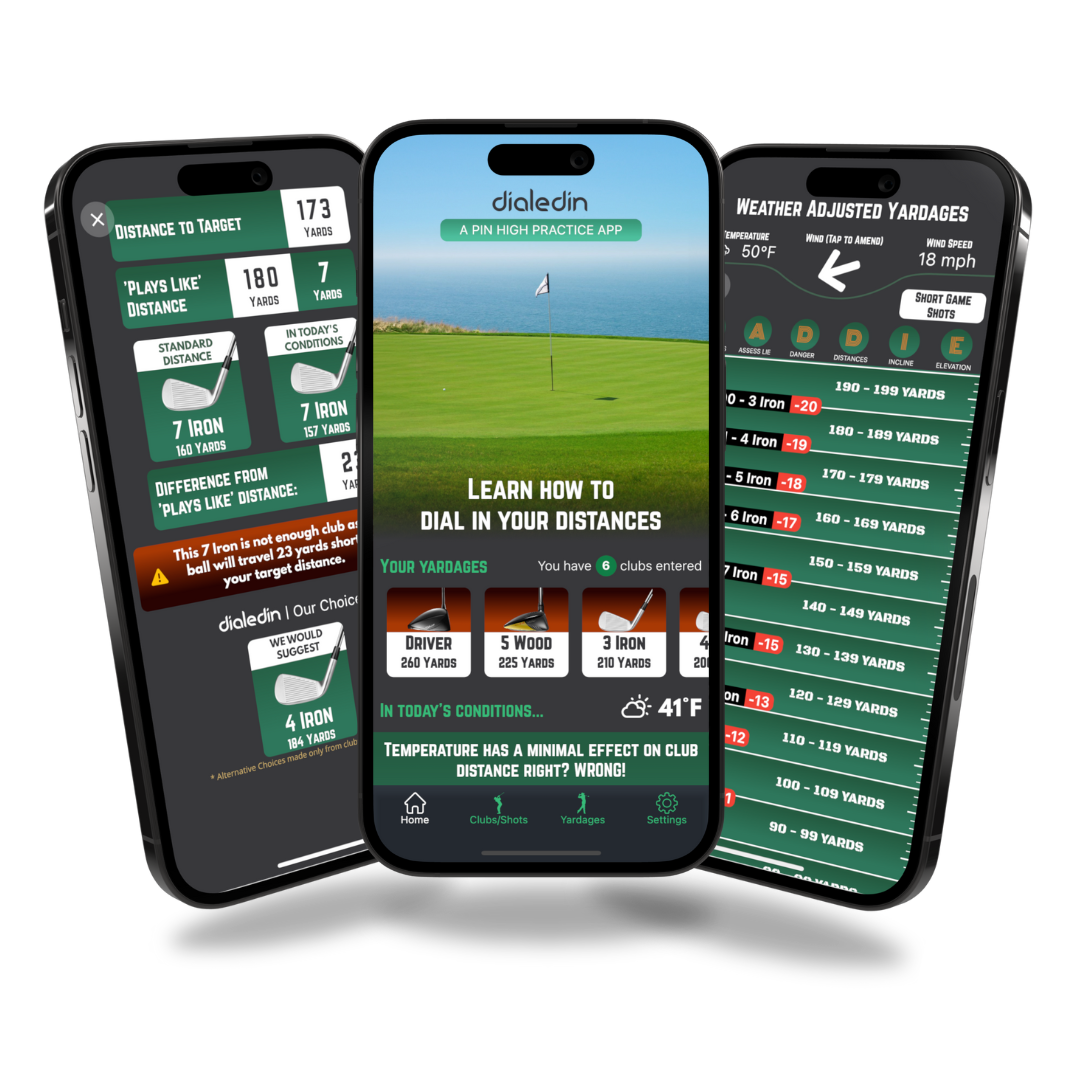 The Dialedin app can teach you to get your clubs dialed in more often, and most importantly in all weather conditions.