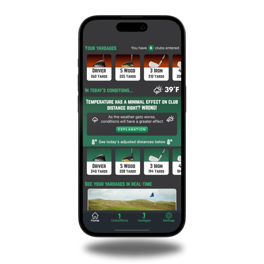 TODAY’S YARDAGES WEATHER ADJUSTED YARDAGES CLUB SELECTION BASICS CLUB SELECTION STEP BY STEP PLAYS LIKE YARDAGES CLUB CHECKER TOURNAMENT MODE